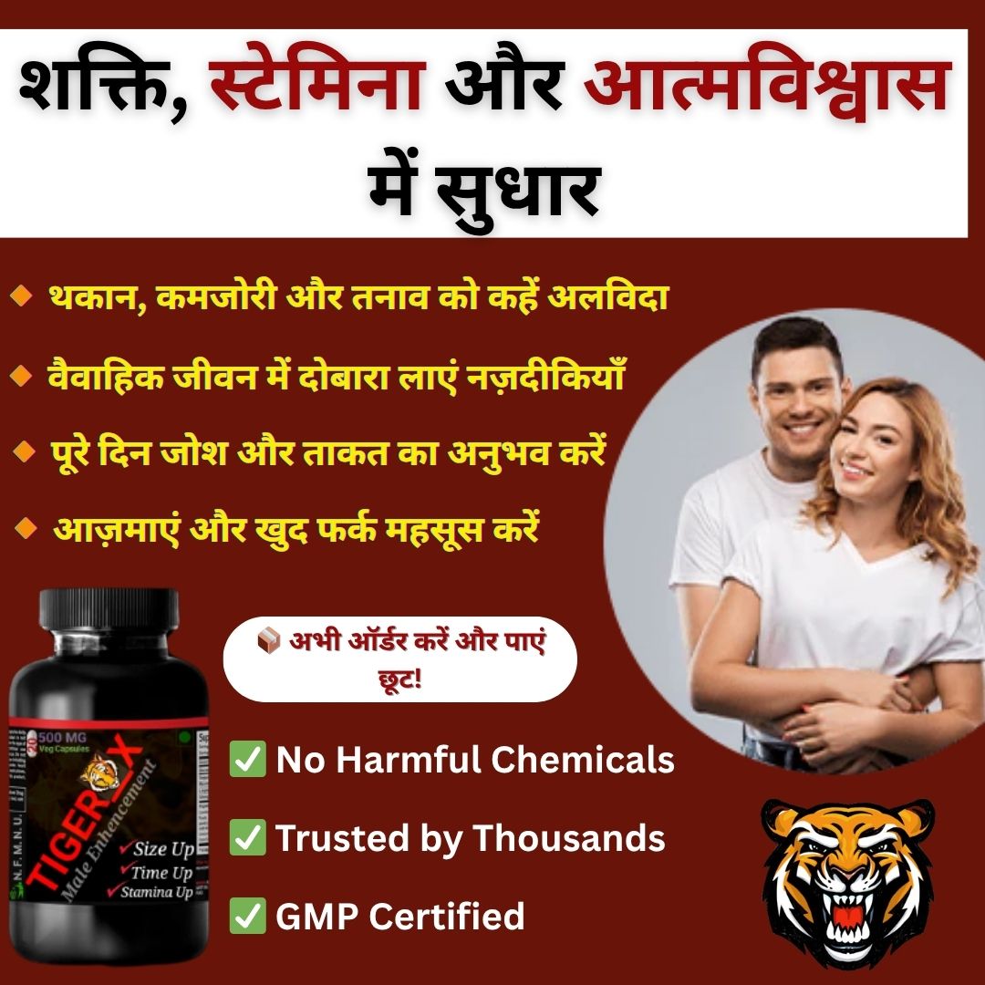आज के इस हमेशा व्यस्त और मेहनती पुरुष के लिए ही हमने Tiger_X तैयार किया है। यह एक वैज्ञानिक रूप से प्रमाणित सप्लीमेंट है, जो आपकी इच्छा शक्ति को बढ़ाता है और क्लाइमैक्स को देर से आने में मदद करता है — जिससे इरेक्शन मज़बूत और लंबे समय तक टिकता है, और आपकी पार्टनर हर बार पूरी तरह संतुष्ट होती है।